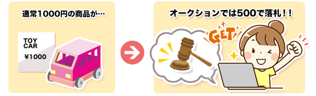 オークションとは販売価格が決まっておらず、好きな金額を入札して商品を手に入れる事ができる購入形式です。
